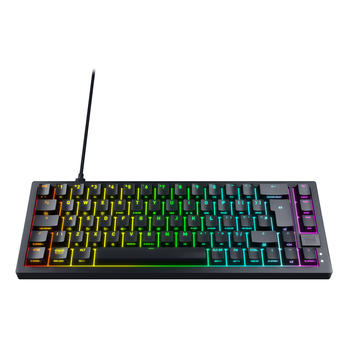 CHERRY K5V2 Compact. Keyboard form factor: 65%. Keyboard style: Straight. Connectivity technology: Wired. Device interface: USB. Keyboard key switch: Mechanical. Keyboard layout: QWERTZ. Keyboard number of keys: 68. Backlight type: RGB LED. Cable length: 2 m. Recommended usage: Gaming. Product colour: Black