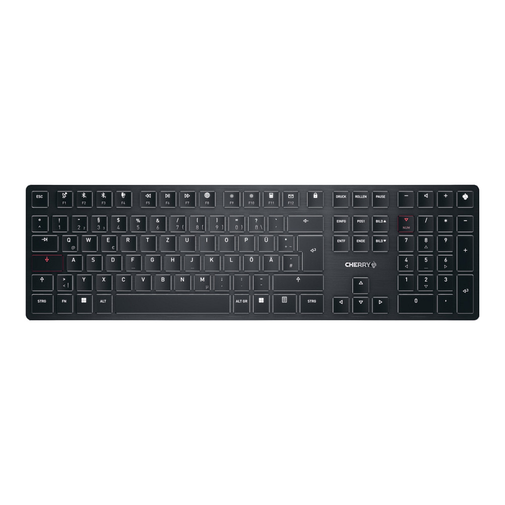 CHERRY KW X ULP. Keyboard style: Straight. Connectivity technology: Wired & Wireless. Device interface: USB + RF Wireless + Bluetooth. Keyboard key switch: Mechanical. Keyboard layout: QWERTZ. Keyboard number of keys: 111. Backlight type: LED. Cable length: 1.5 m. Recommended usage: Universal. Product colour: Black