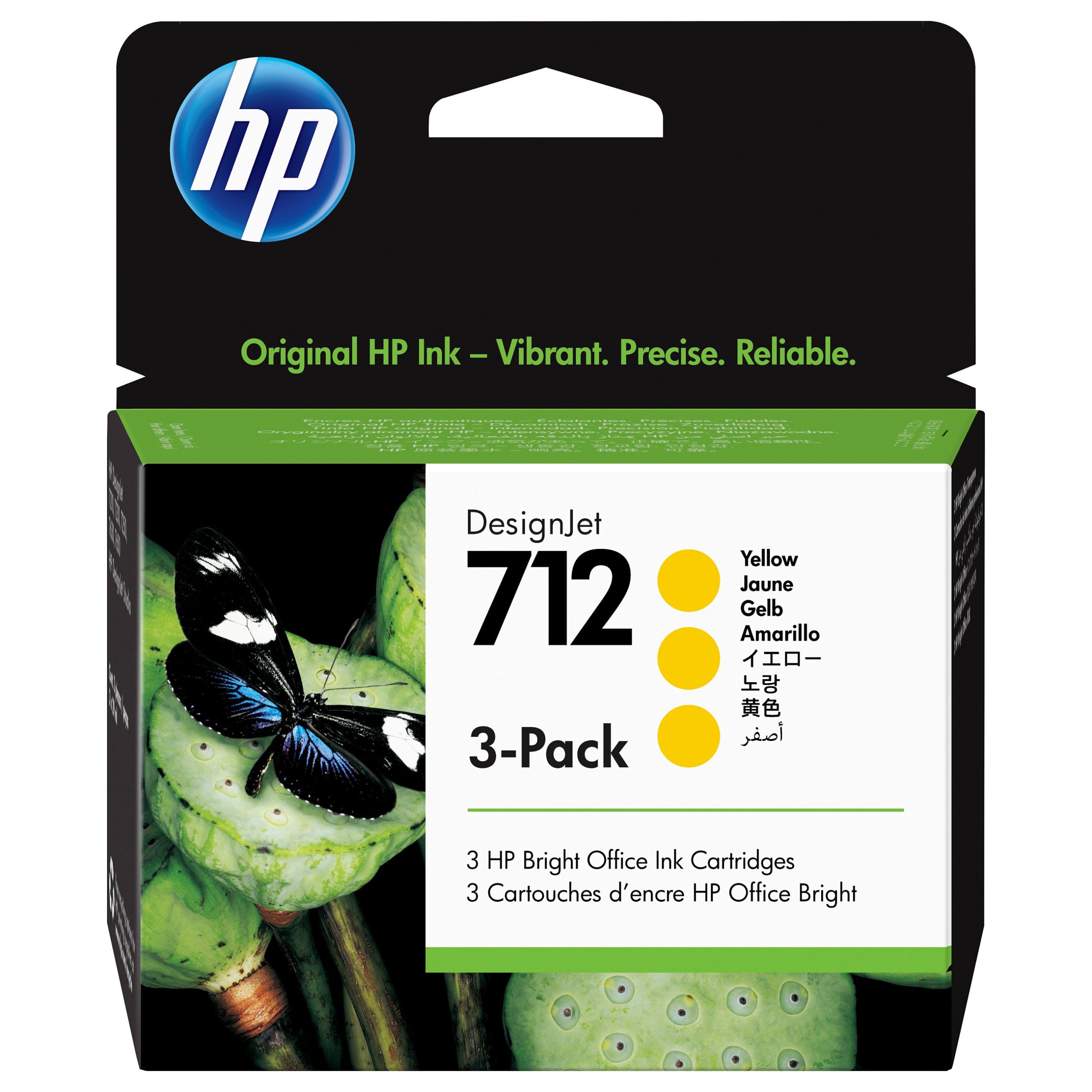 HP 712 3-pack 29-ml Yellow DesignJet Ink Cartridge. HP DesignJet T210. T230. T250. T630. T650 Printer series. Thermal inkjet. Yellow. Singapore. Malaysia. 119 mm. 46.2 mm
