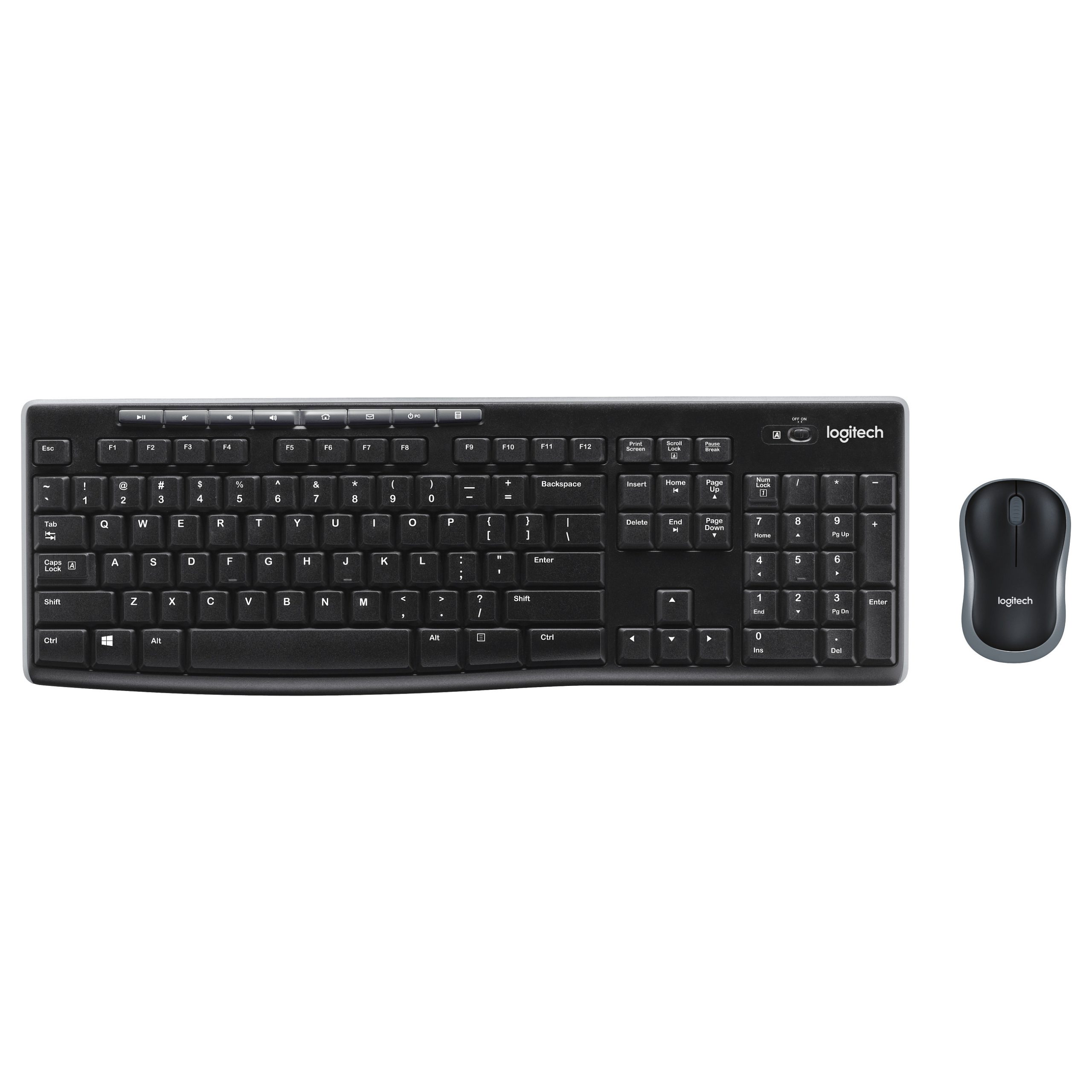 Logitech Wireless Combo MK270. Keyboard form factor: Full-size (100%). Keyboard style: Straight. Connectivity technology: Wireless. Device interface: RF Wireless. Keyboard layout: QWERTY. Keyboard number of keys: 111. Recommended usage: Universal. Product colour: Black. Mouse included