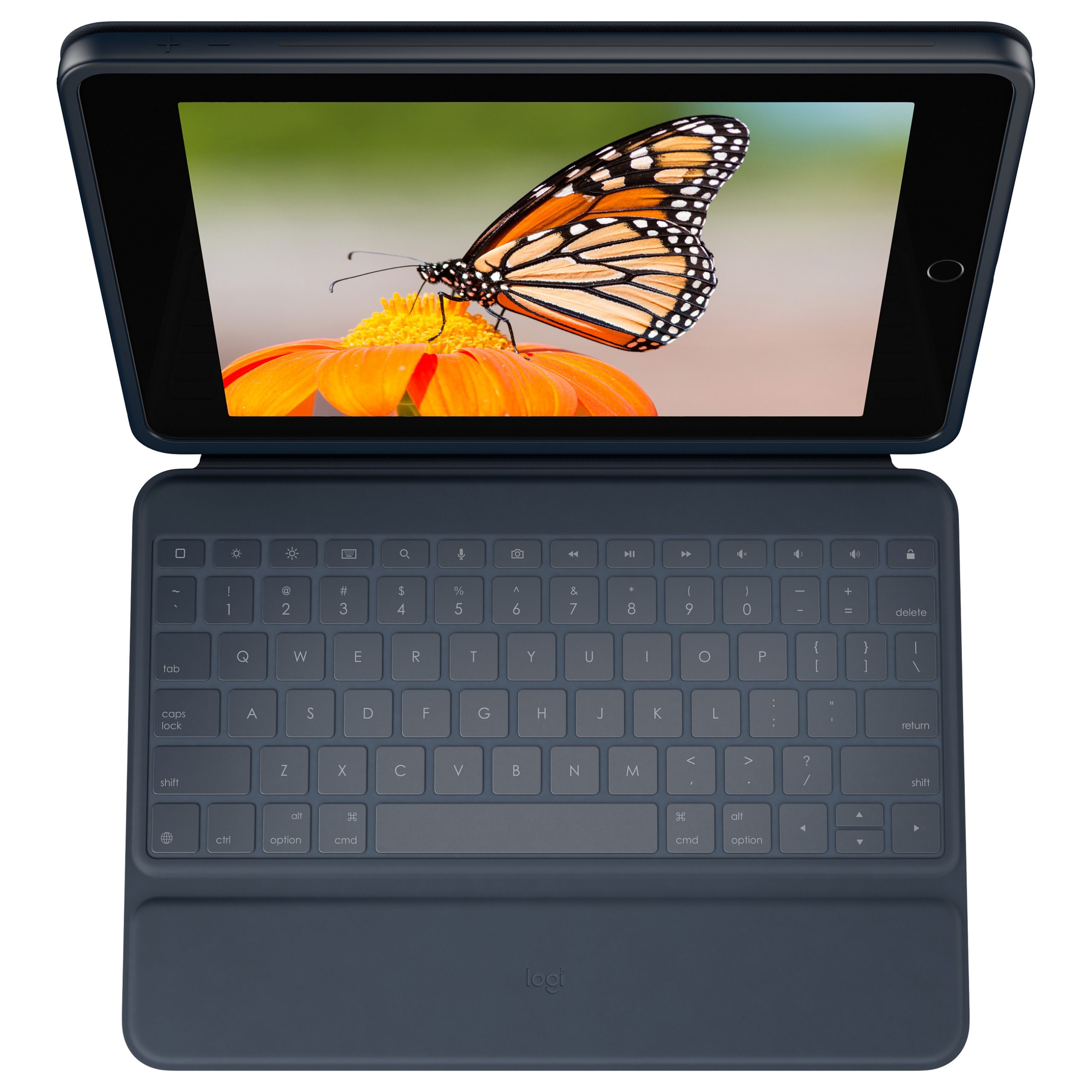 Logitech Rugged Combo 3 Keyboard Case for iPad (7th. 8th. & 9th generation). Keyboard layout: QWERTY. Keyboard language: UK English. Key pitch: 1.8 cm. Brand compatibility: Apple. Compatibility: iPad (7th gen) iPad (8th Gen) iPad (9th gen). Product colour: Blue. Connectivity technology: Docking. Device interface: Smart Connector. Power source: Dock. Mobile operating systems supported: iPadOS